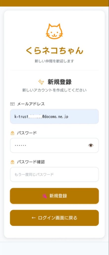 ●くらネコアプリの新規登録